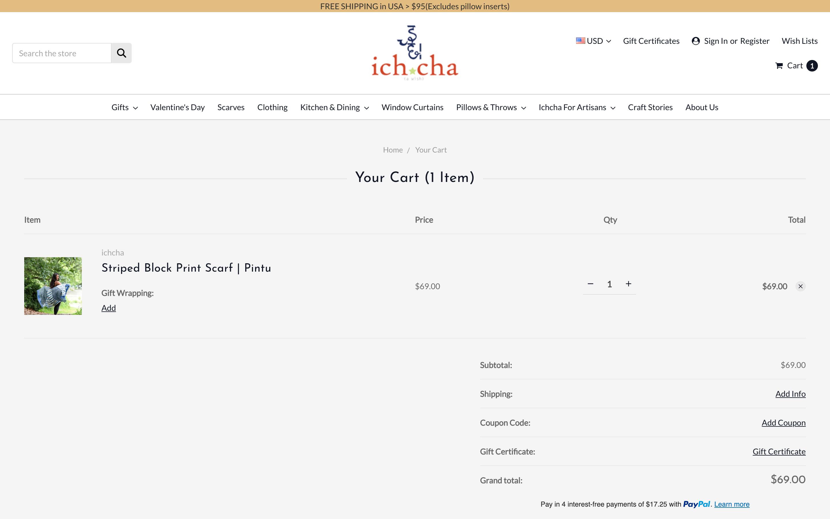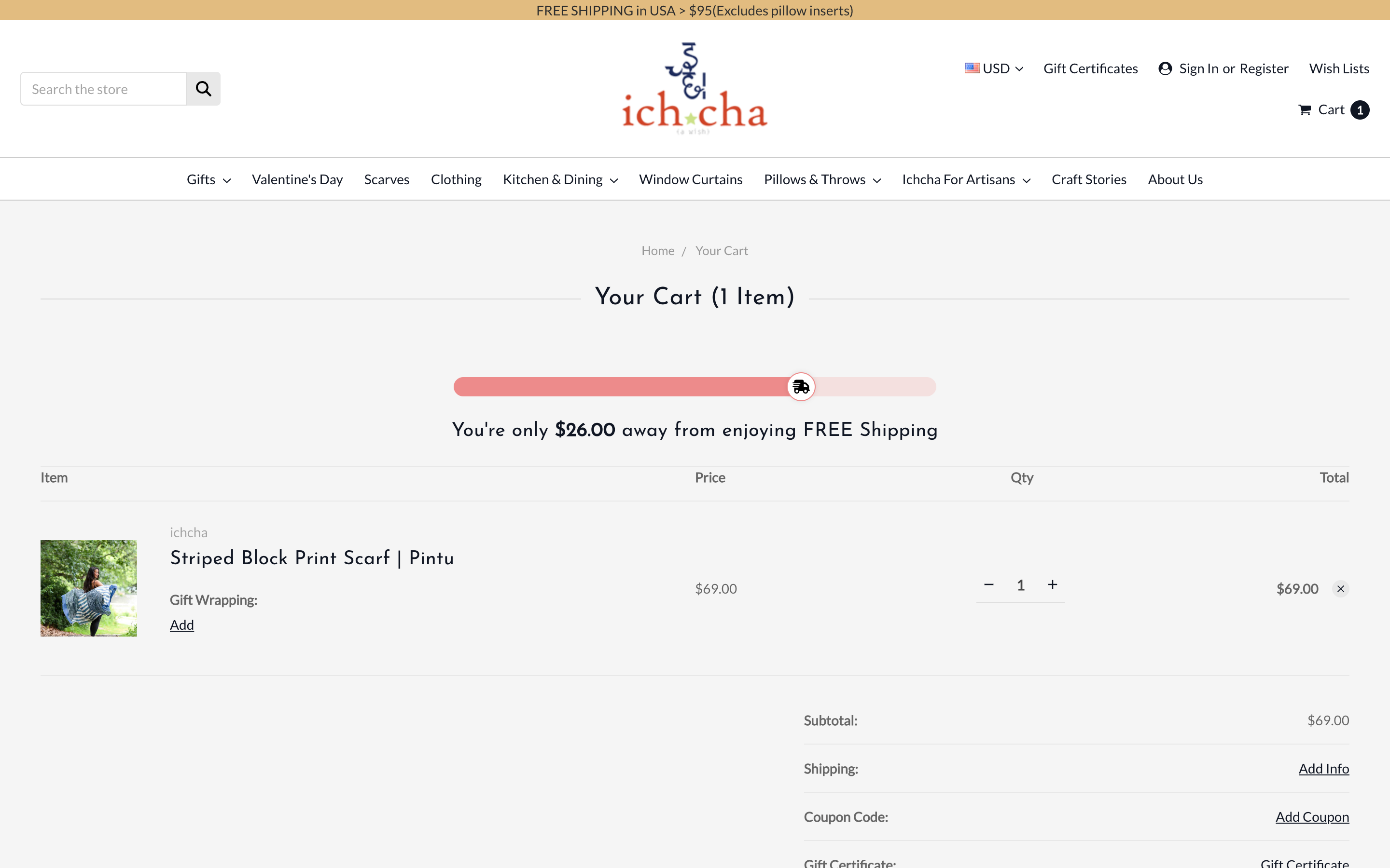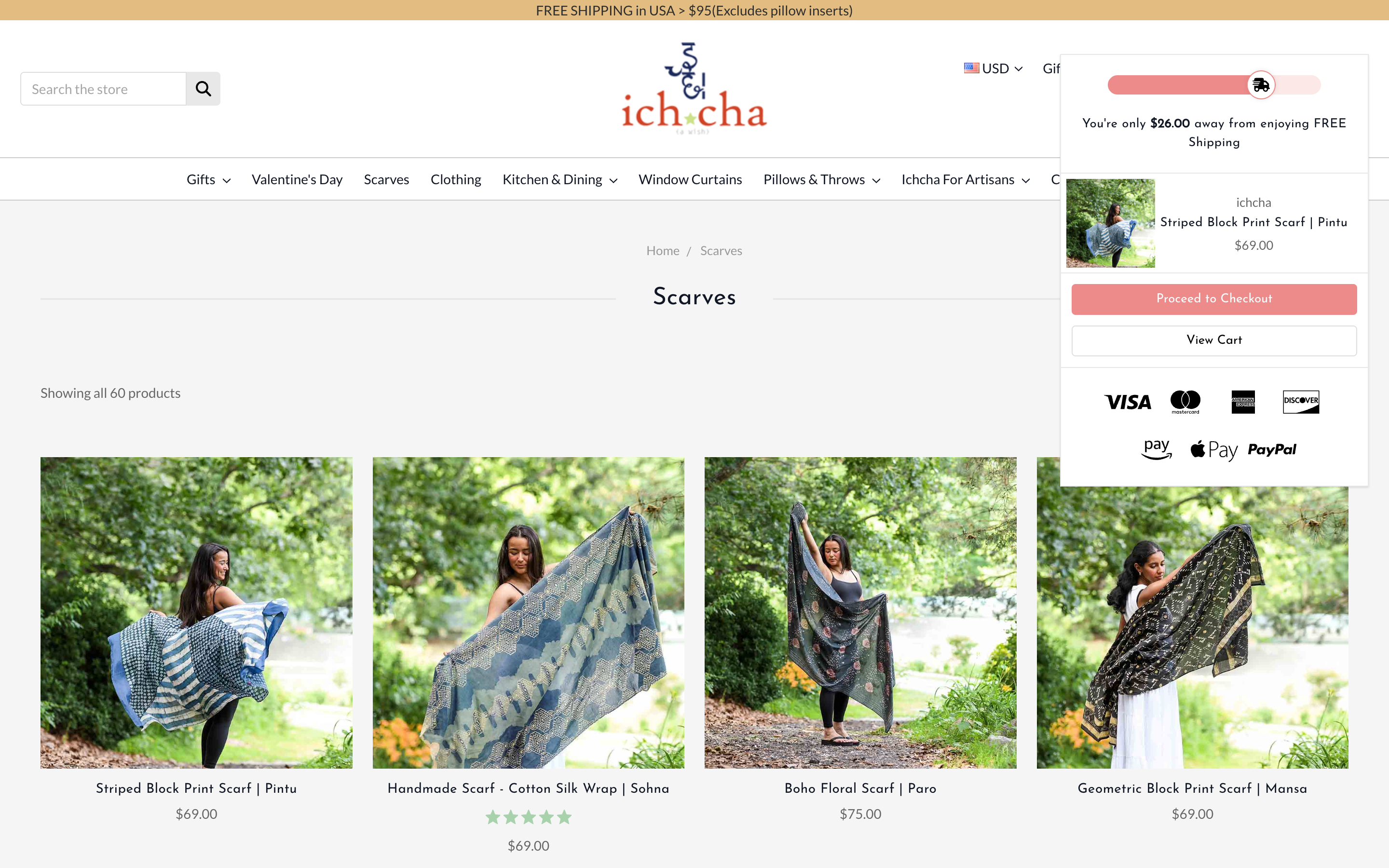 Ichcha wanted a way to motivate shoppers to reach their free shipping threshold in the USA. While their store offered free shipping over a certain order value, customers had no visual cue to show how close they were to qualifying — particularly in the mini cart and cart page.