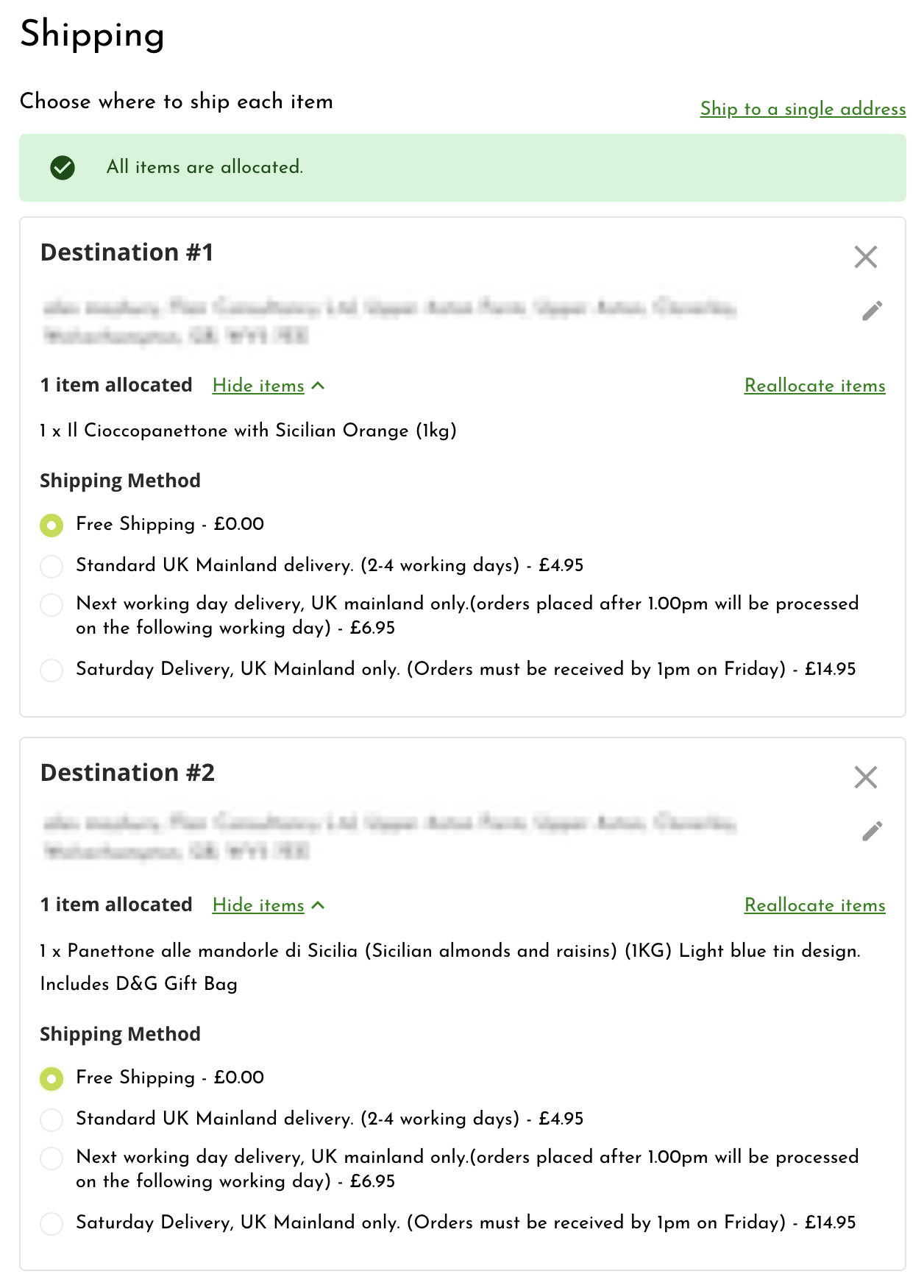 The Panettone Store was facing a tricky checkout issue during gifting season. Customers sending panettones to multiple addresses were inadvertently receiving free delivery for every address, even though the promotion was intended for only one UK mainland delivery.